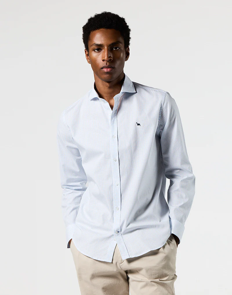 Camisa Italia mini cuadro celeste