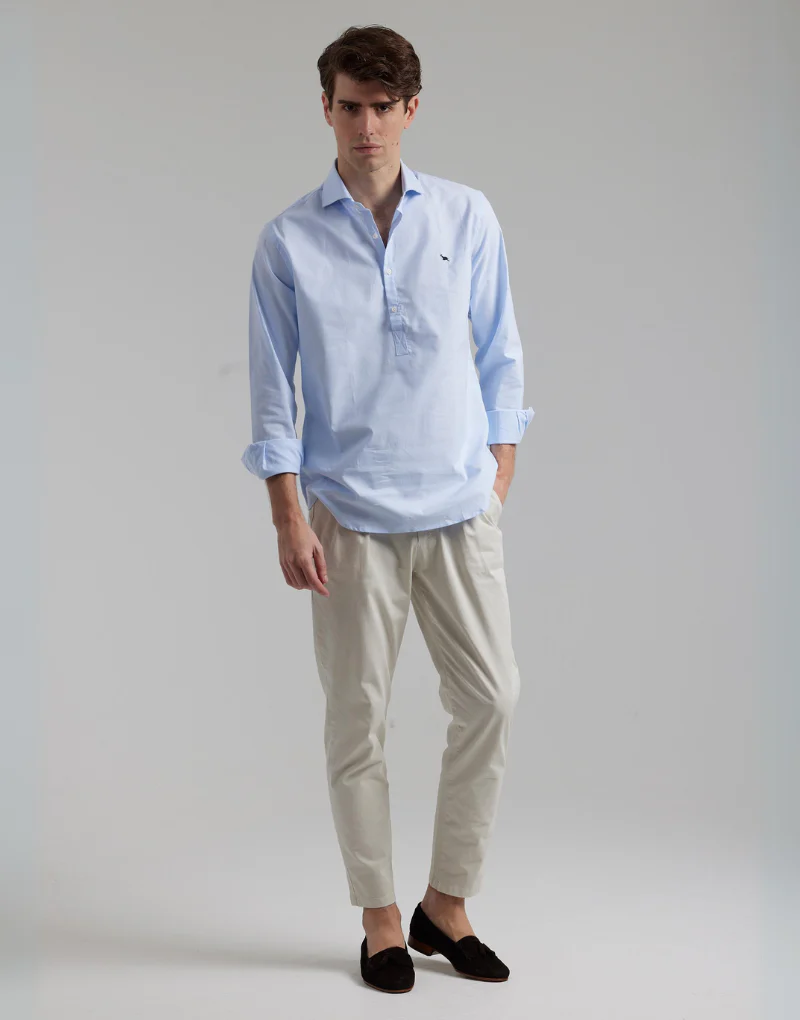 Camisa polera azul lisa oxford