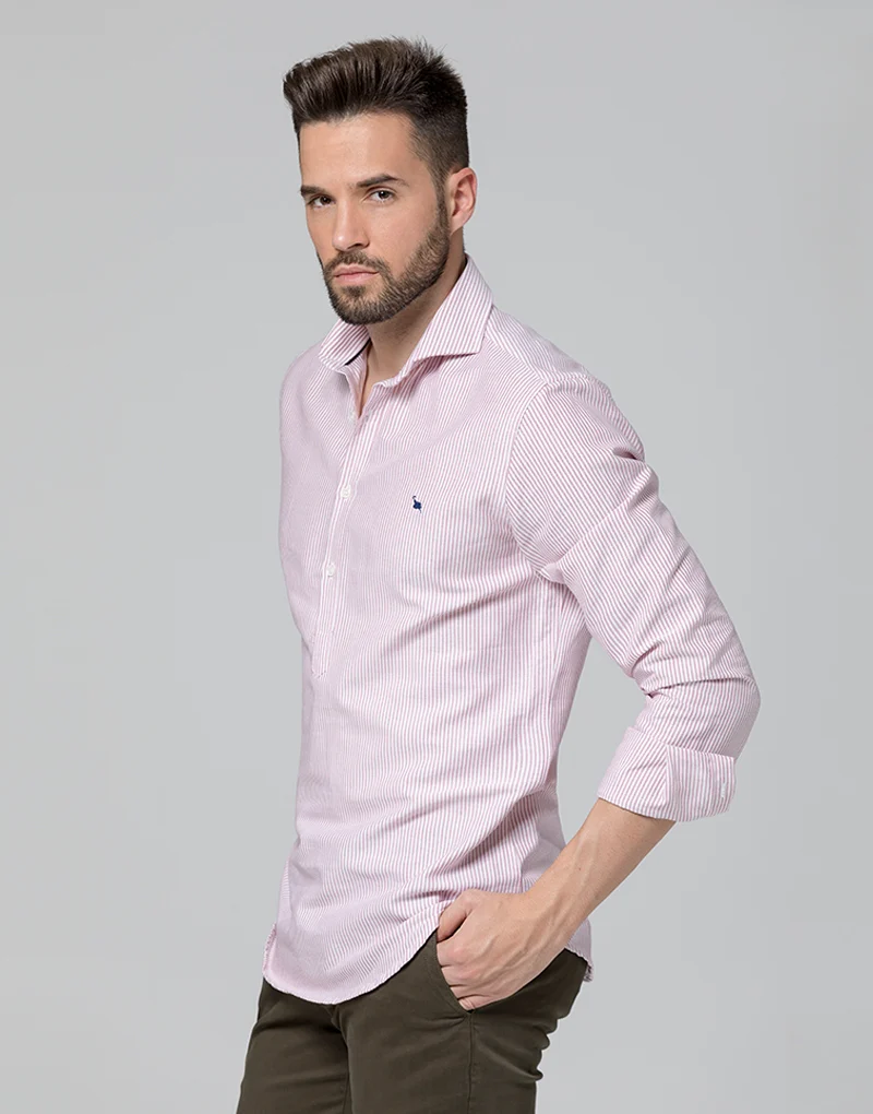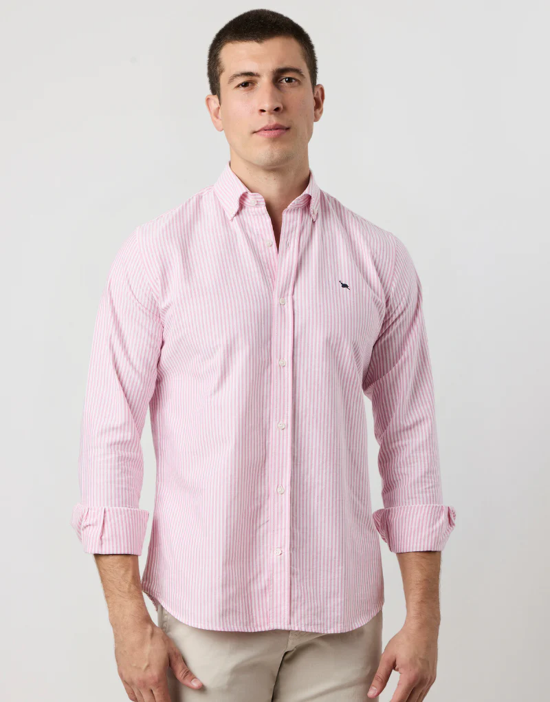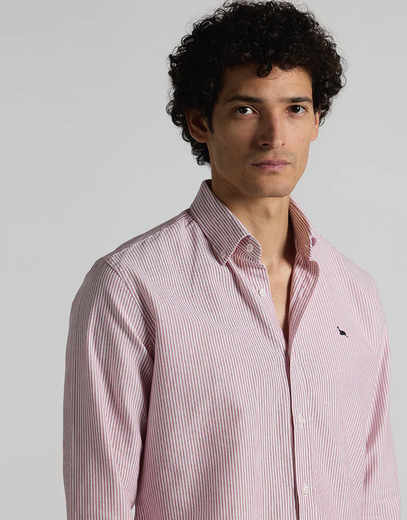 Camisa oxford rayas anchas fresa