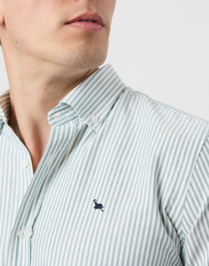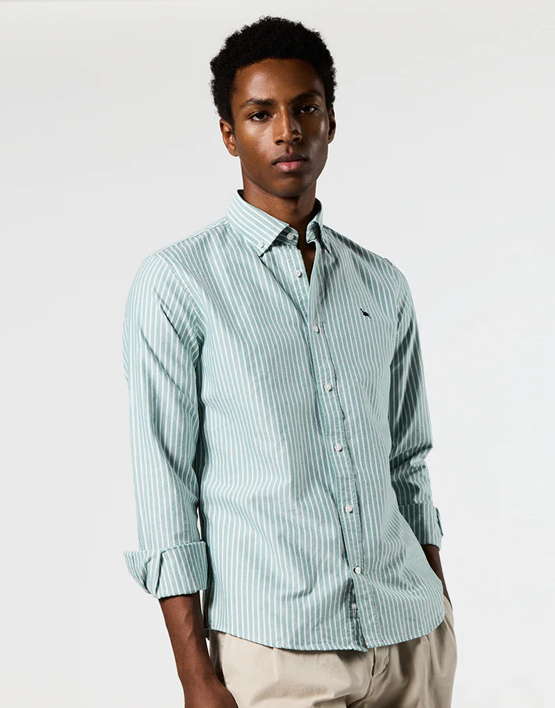 Camisa oxford verde raya blanca