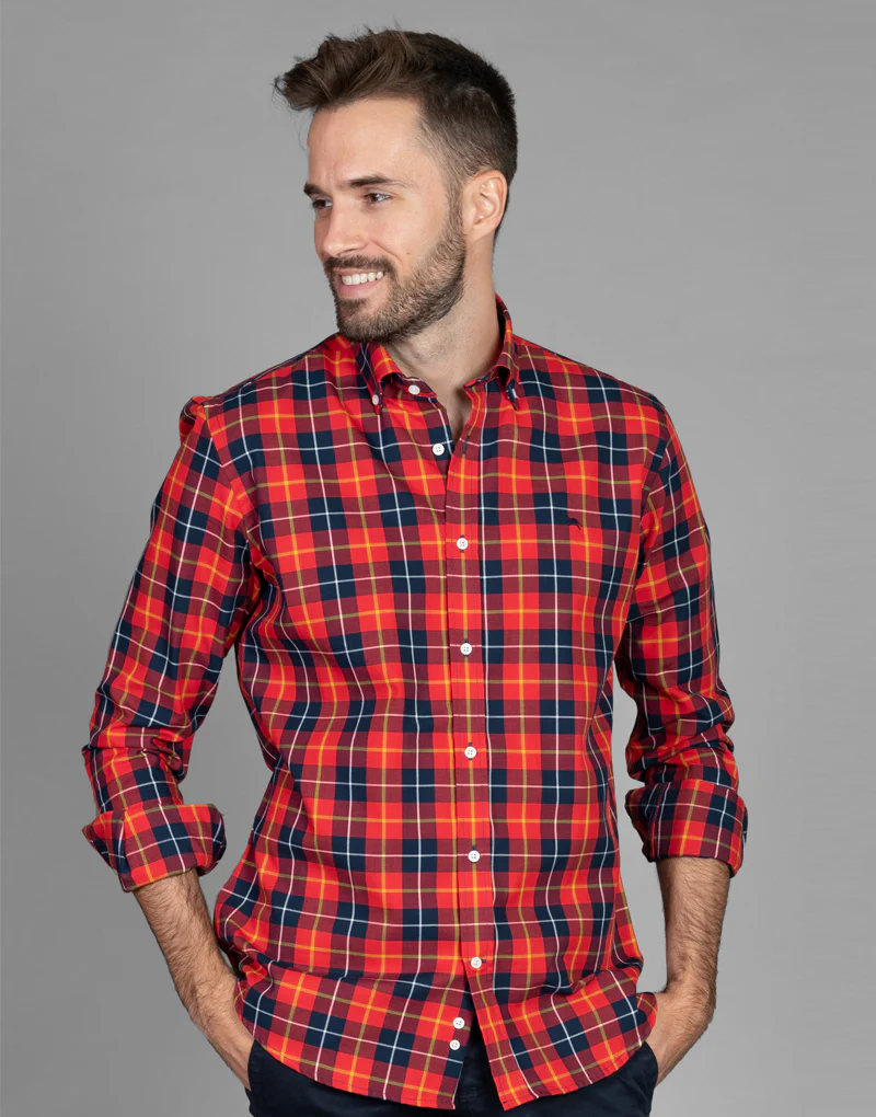 Camisa sport cuadros coral
