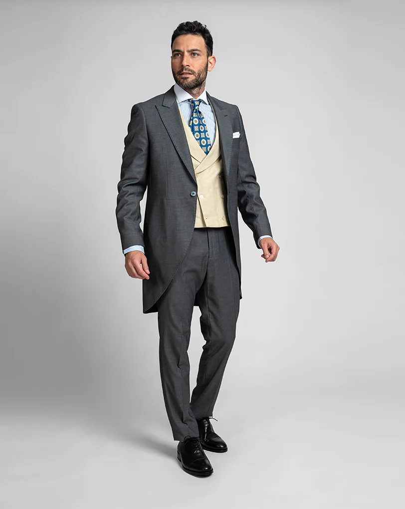 Chaqué espiga gris chaleco cruzado