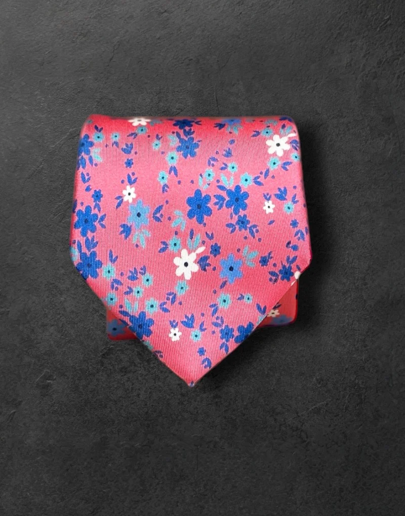 Corbata seda twill flores fucsia