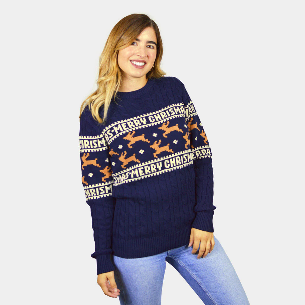 Suéter de Navidad Parejas Elegante Azul con Renos Algodón Orgánico