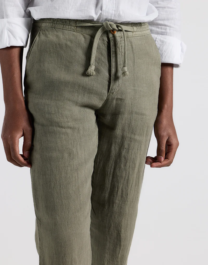 Pantalón cordón lino khaki