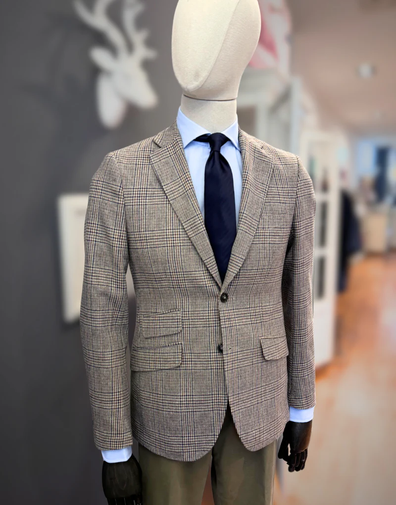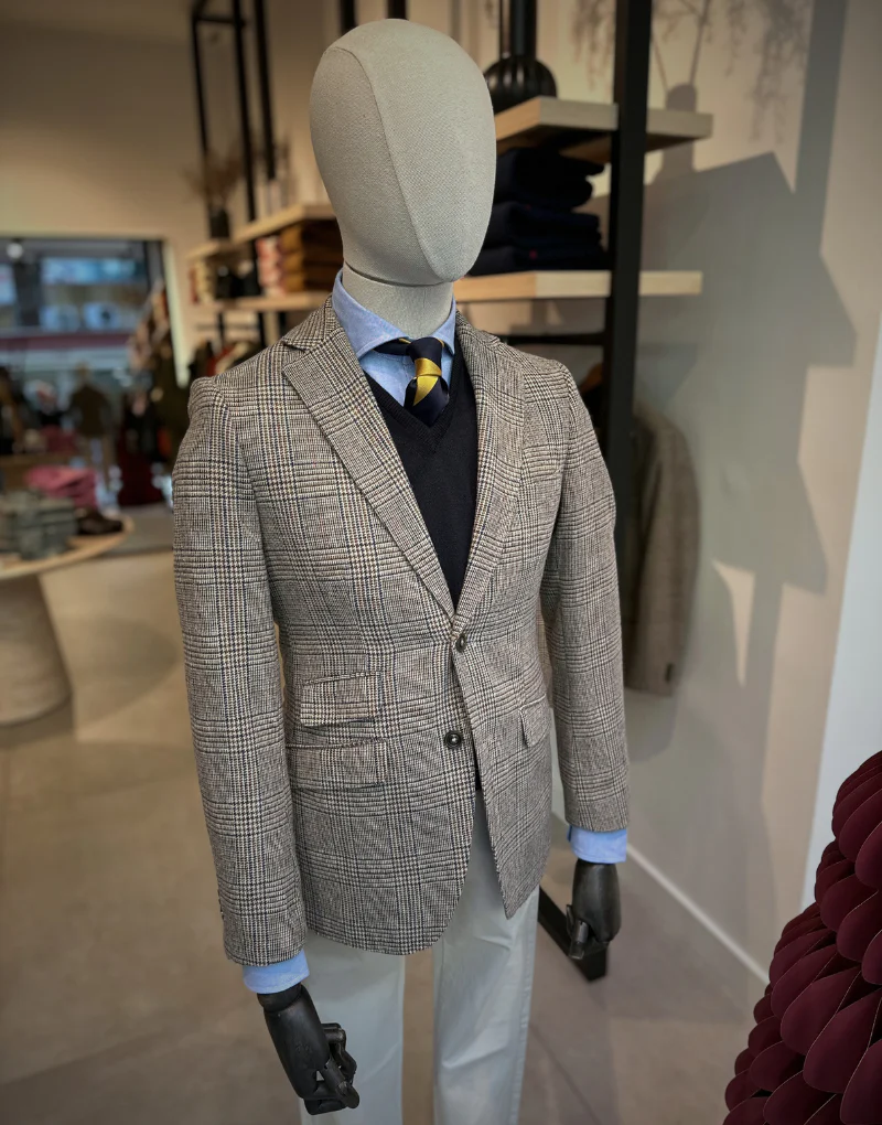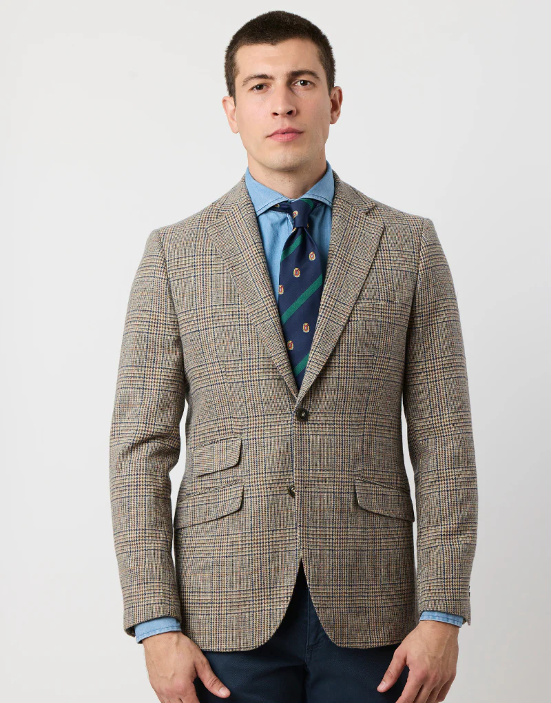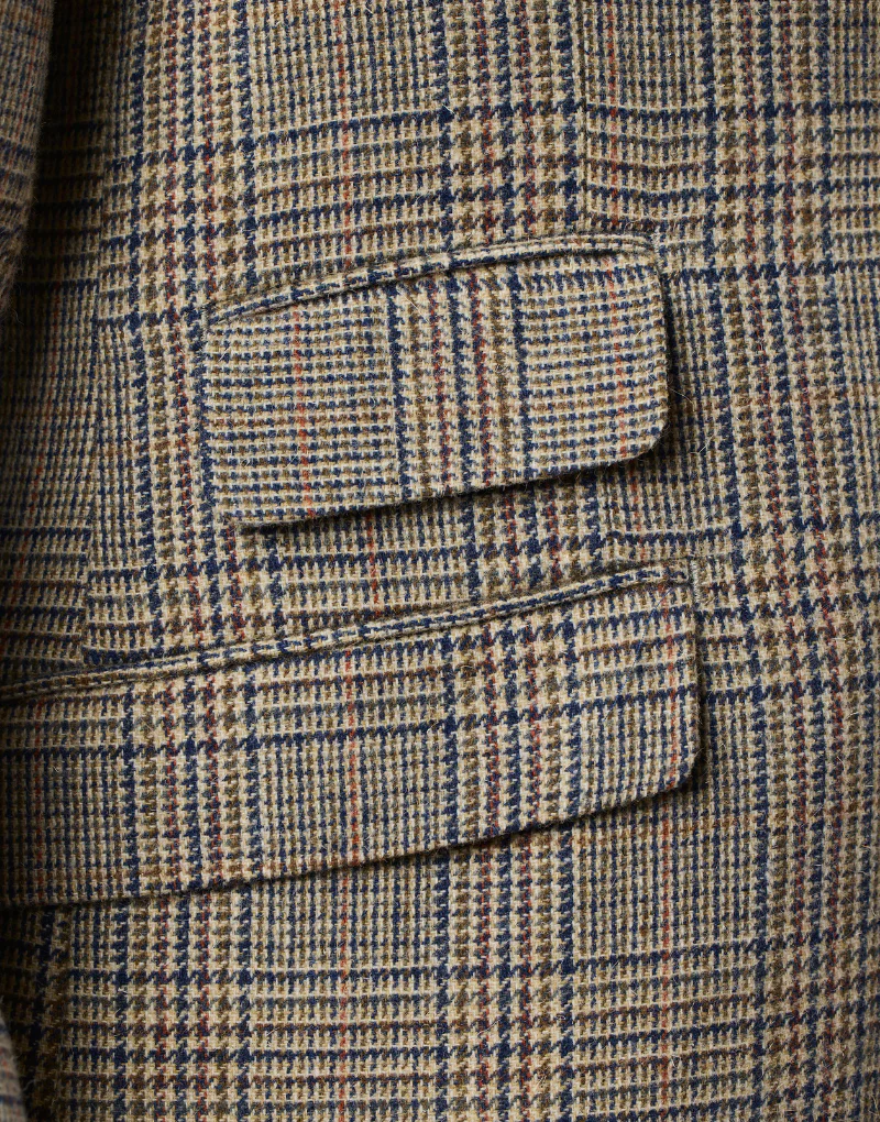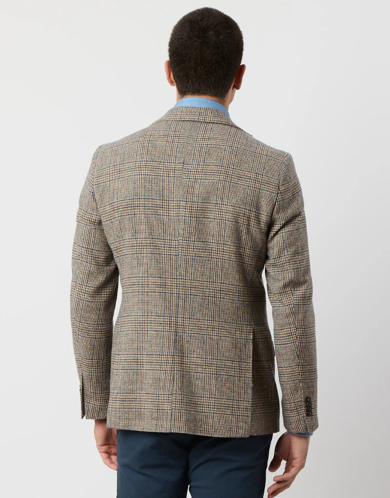 Descubre nuestra americana en tonos tostados con un clásico estampado de cuadro de gales. Confeccionada en lana 100%, esta prenda combina estilo y confort de manera perfecta. Su diseño incluye un bolsillo inclinado con cerillera y dos aberturas traseras para un ajuste impecable. Esta americana es la elección ideal para un look elegante y versátil, ya sea para ocasiones formales o casuales. Dale un toque de distinción a tu estilo con esta pieza atemporal.