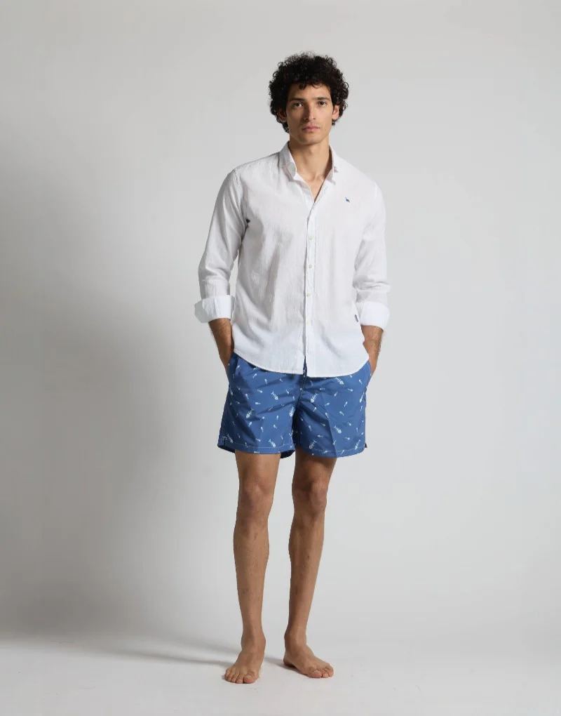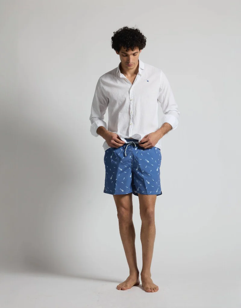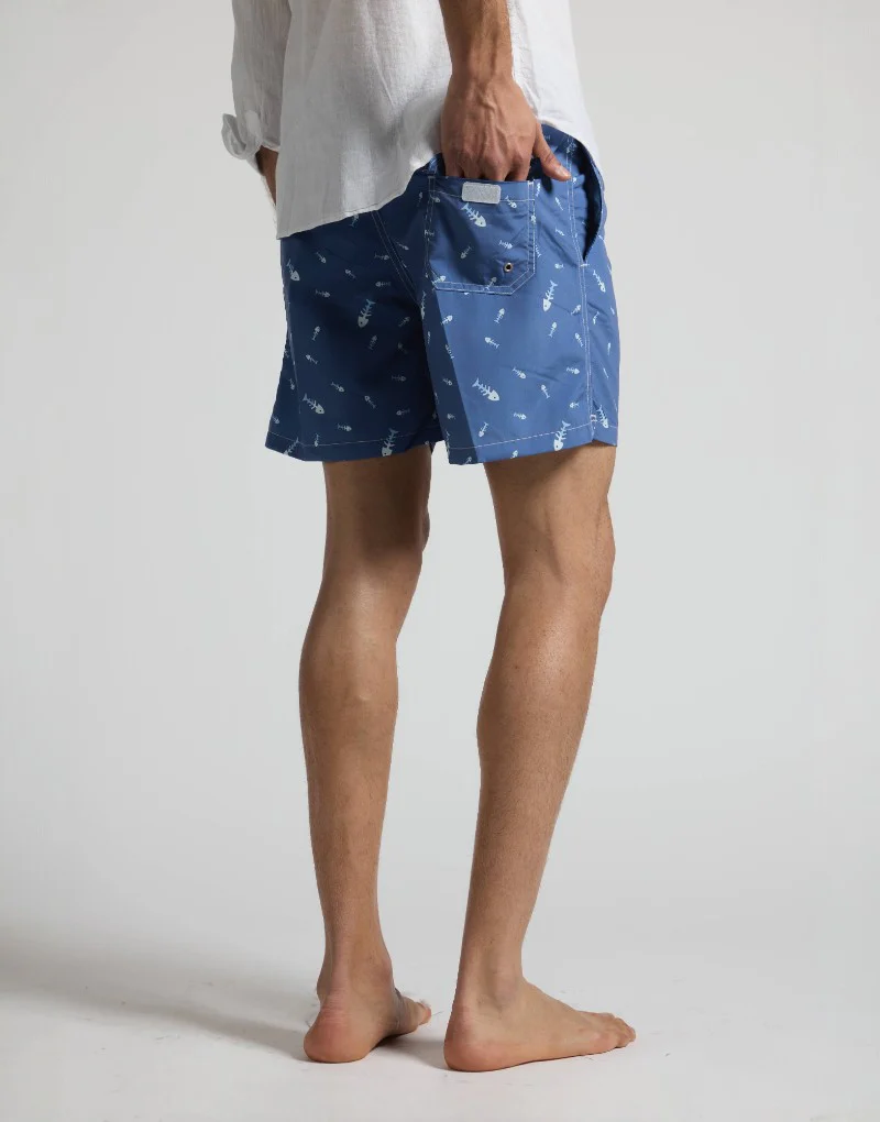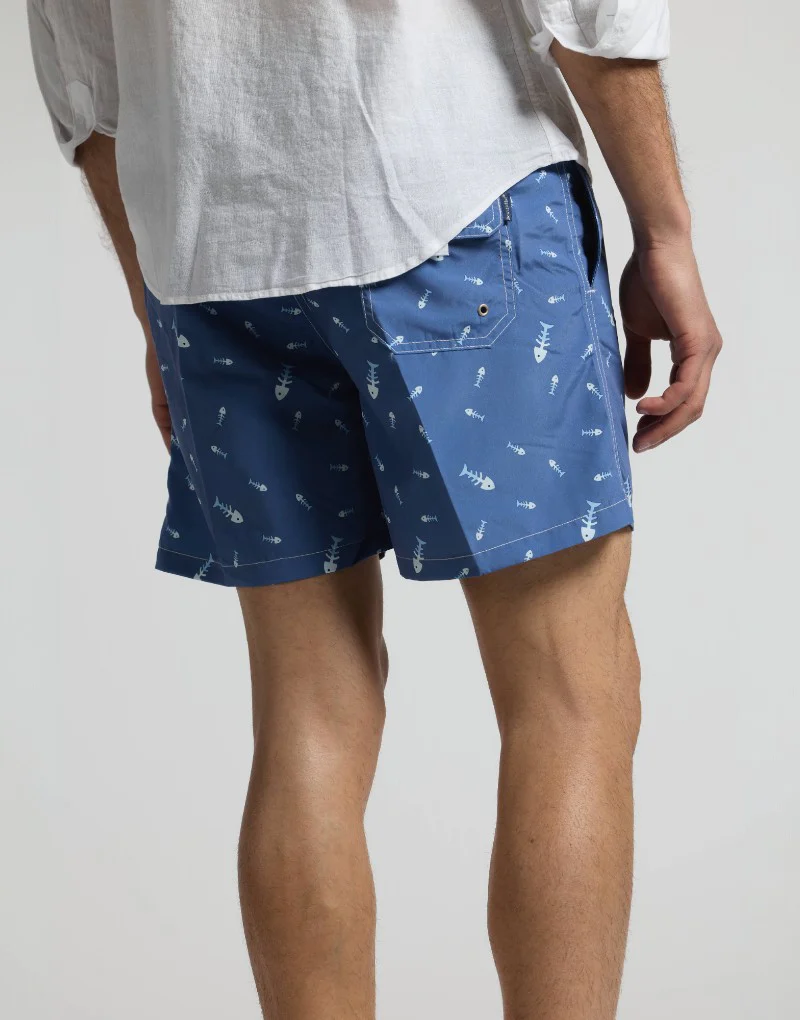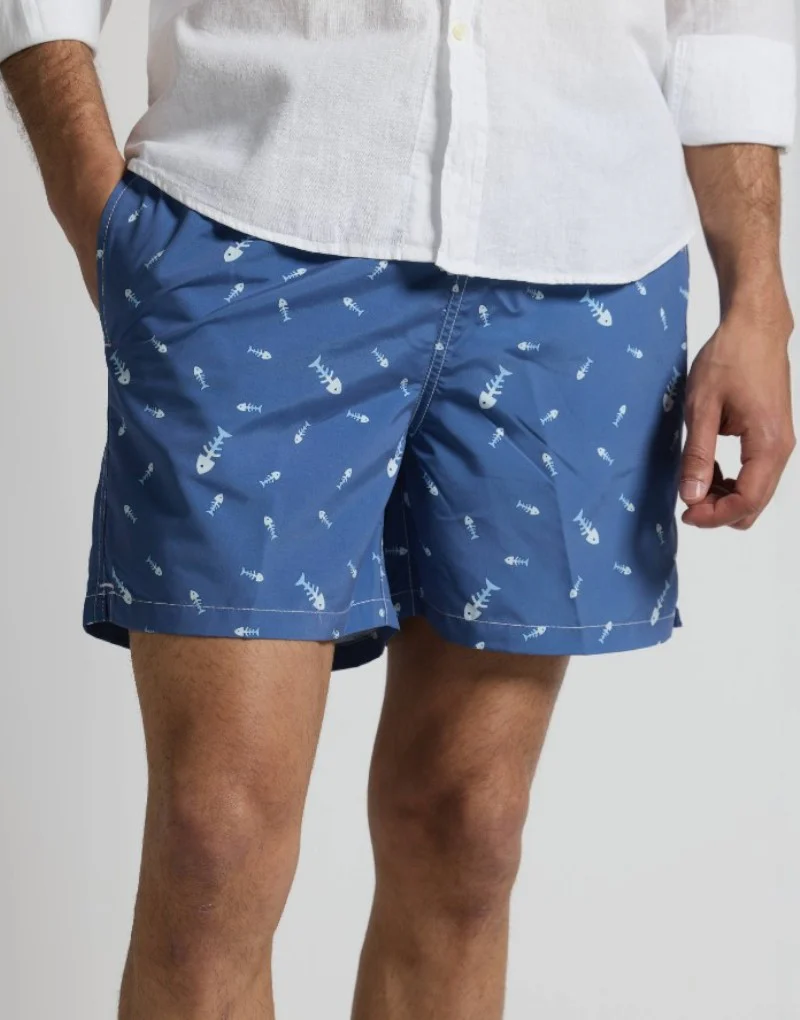 Disfruta del verano con nuestro bañador de secado rápido. Con un estampado divertido de raspas de pescado, este bañador no solo es cómodo, sino que también es perfecto para tus días de diversión bajo el sol.
