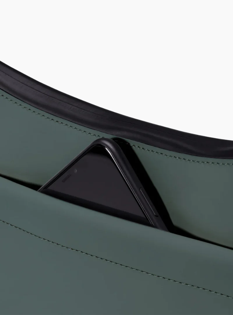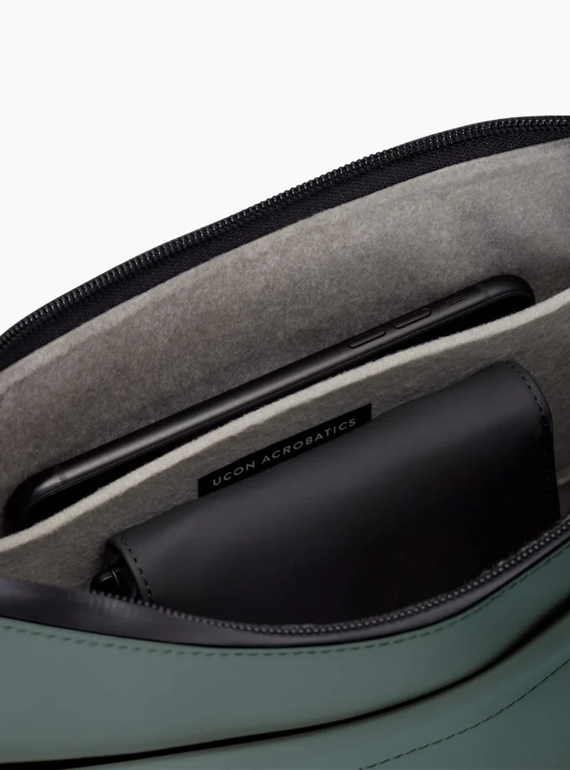 El Ucon Acrobatics Alva Medium Bag en color Pine Green es un bolso moon-shape minimalista creado bajo los principios de la economía circular. Fabricado en un material técnico propio de Ucon Acrobatics, desarrollado a partir de residuos textiles reciclados, ofrece más de 100 veces la resistencia a arañazos frente a una piel sintética convencional.