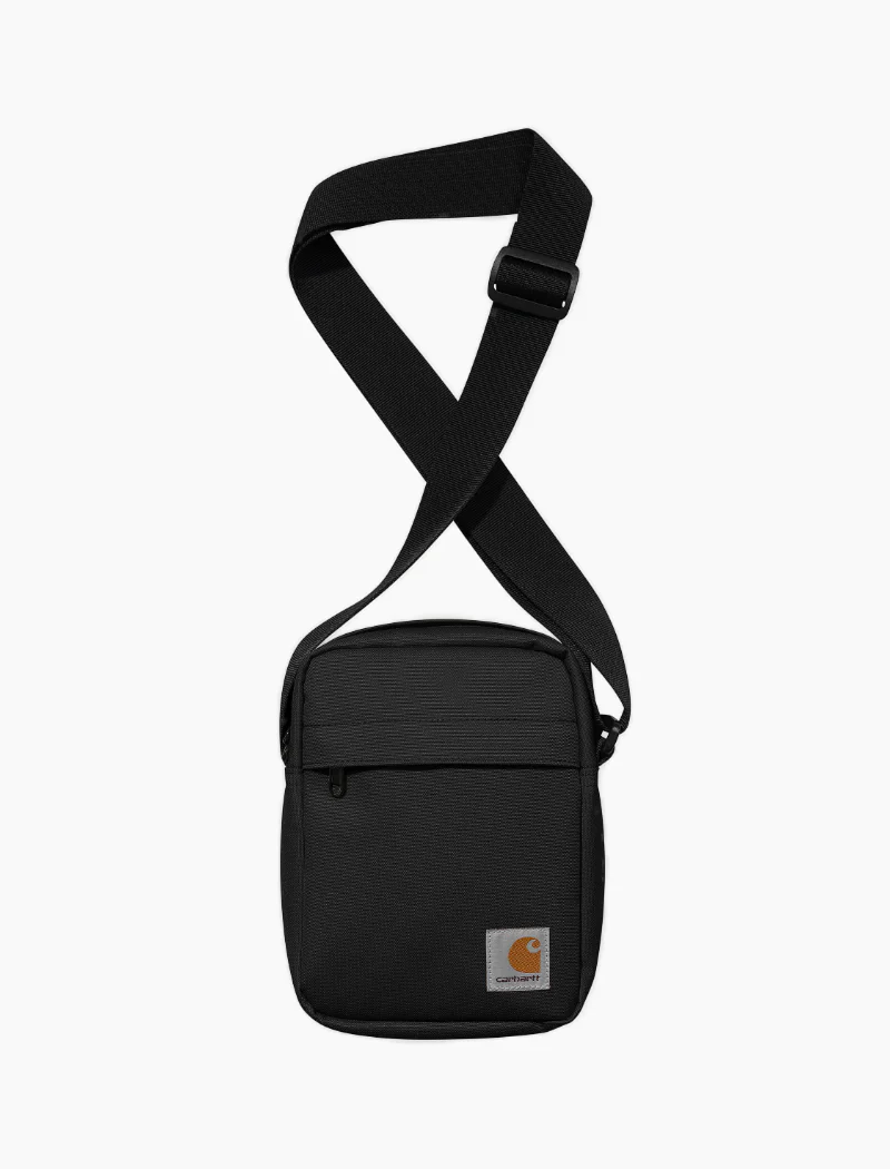 El Jake Shoulder Pouch está confeccionado en lona de poliéster reciclado y repelente al agua, y no tiene forro. Cuenta con un compartimento principal con cremallera y un bolsillo delantero, así como un bolsillo interior de malla. Una correa para el hombro ajustable y una etiqueta cuadrada tejida completan el diseño.