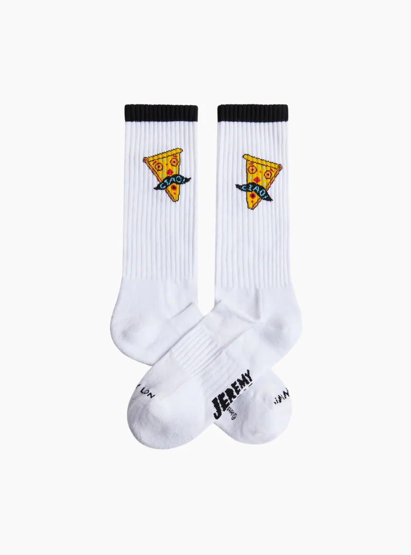 Explora el universo creativo del artista Jeremyville de una forma muy especial gracias a estos calcetines deportivos. ¡Son ideales para dar un toque de buen rollo y humor a tu rutina!