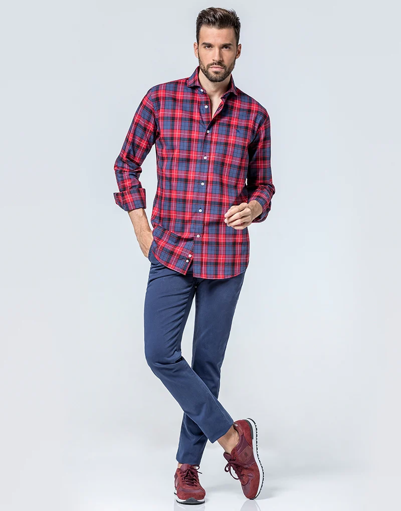 Camisa con cuello cutaway con estampado a cuadros escoceses. Cuenta con el logo bowler hat bordado en el pecho. Los cuadros un estampado que nunca ha pasado de moda.