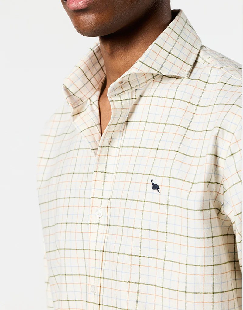 Esta camisa de viyela ligera en algodón 100% es perfecta para los días más frescos sin renunciar al confort. Su cuello italiano con ballena extraíble aporta un punto refinado, mientras que la suavidad del tejido convierte cada puesta en un auténtico placer.