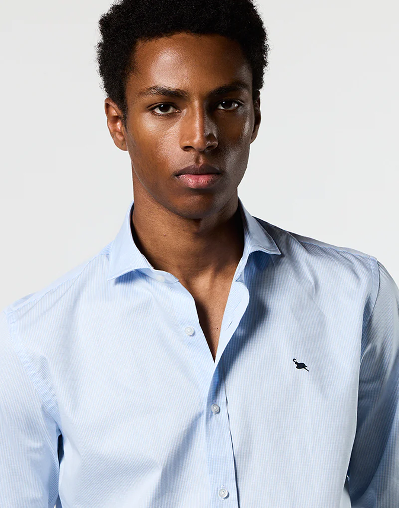 Camisa de cuadritos pequeños, versátil para combinar con tu traje preferido, americana, o usarla suelta para un estilo clásico con un toque deportivo. Fabricada con tejido de alta calidad y un estilo atemporal, esta camisa es perfecta para adaptarse a cualquier ocasión.