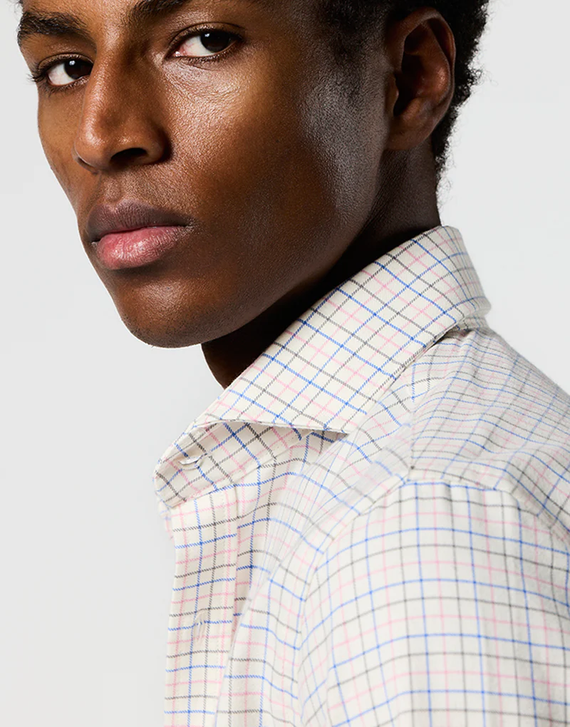 Una opción fresca y con estilo para los que no quieren vestir siempre igual. Esta camisa de cuadros Harrys pequeños mezcla tonos azules, rosas y marrones en un equilibrio perfecto entre sobriedad y originalidad. Su tejido de viyela fina 100 % algodón es suave, ligero y agradable en contacto con la piel. El cuello italiano con ballenas extraíbles y el bordado en el pecho aportan un toque cuidado, ideal tanto para llevar sola como bajo una americana o jersey entretiempo.