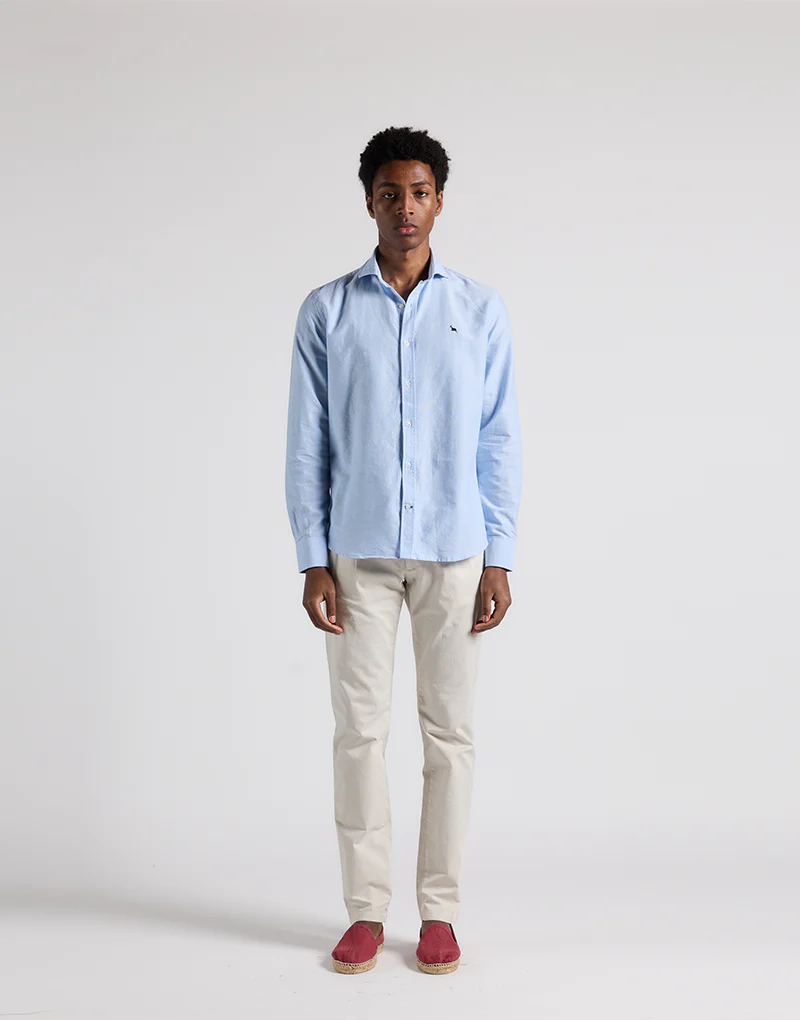 Esta camisa de tonalidad fresa y cuello estilo italiano, con ballenas extraibles te permitira llevar el cuello en su sitio, es perfecta para ser usada sola en cualquier época del año. Además, al ser lavada adquiere una suavidad que notarás al usarla.