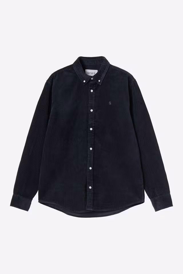 La camisa L/S Madison Cord de Carhartt Wip una camisa de pana para hombre confeccionada en 100% algodón con una textura gruesa de ocho wales y un acabado lavado en prenda que le aporta suavidad y un aspecto más relajado.