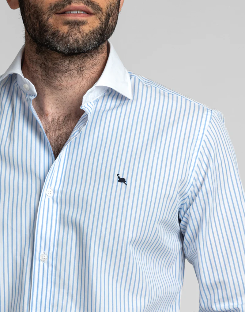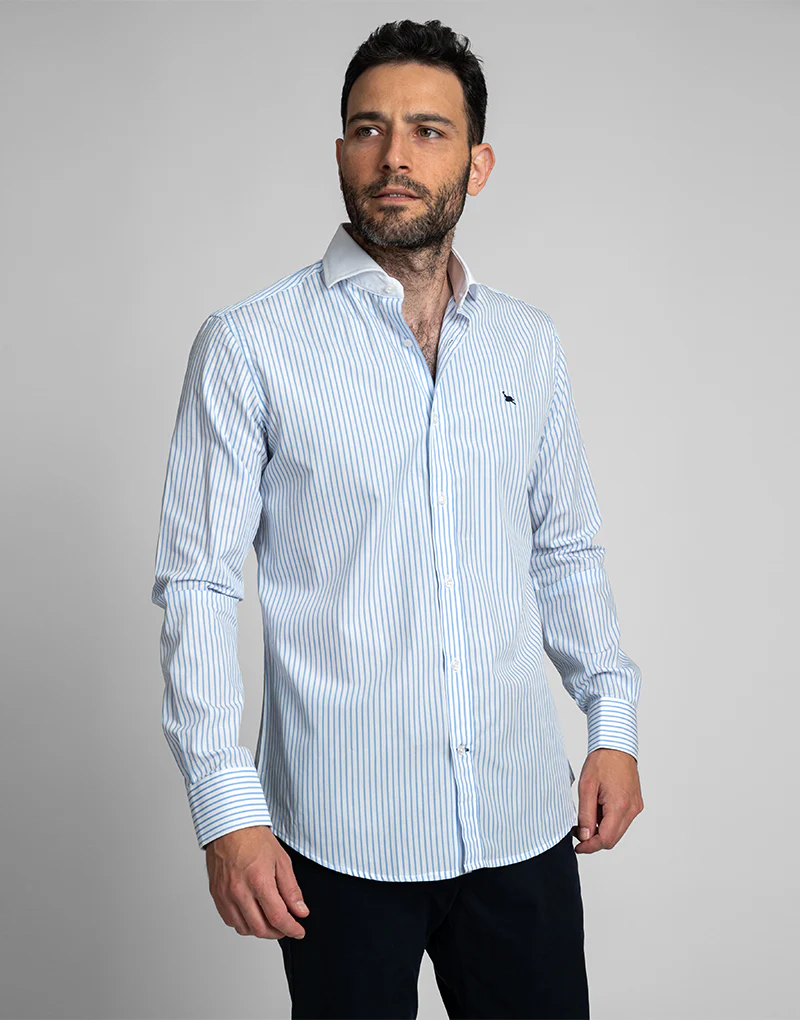 Camisa de mil cuadros cuello cutaway o italiano, confeccionada en un tejido de popelin que puedes usar todo el año.