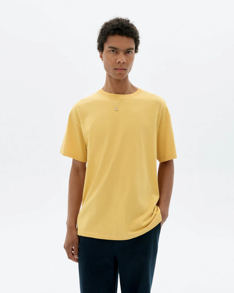 La camiseta Flower Rope “Sahara Sun” de Thinking MU aporta luz y textura con su bordado a mano, fit relaxed y gramaje 180 gsm. En 100% algodón orgánico certificado GOTS, diseñada en Barcelona y hecha en India. Suave, cómoda y con carácter gráfico.