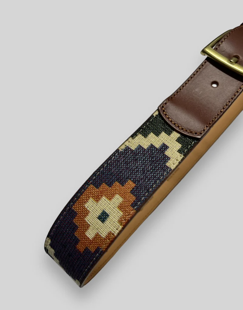 Este cinturón étnico con diseño en rombos azul es perfecto para combinar con todo tipo de pantalones. Además, su versatilidad lo hace ideal para lucir con camisas de lino en verano. Añade un toque único a tu look con uno de nuestros cinturones étnicos.