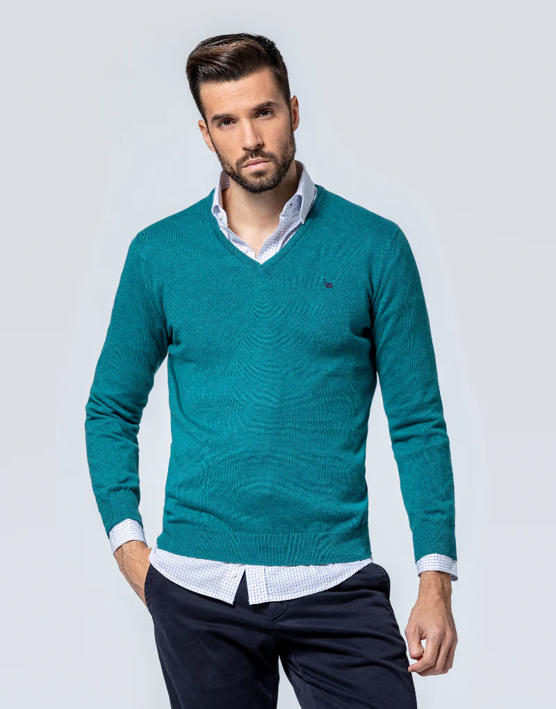Jersey verde esmeralda merino pico