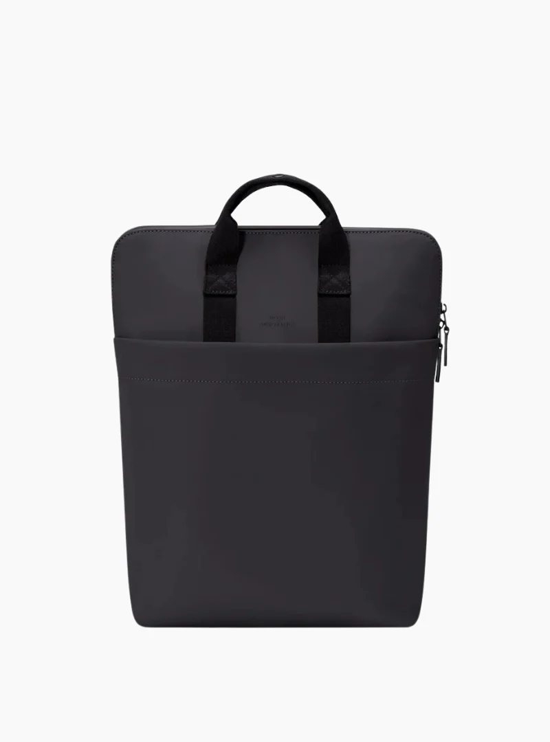 Está fabricada en un material vegano resistente al agua, mezcla de PU y poliéster, con un tacto suave y acabado técnico muy característico de la serie Lotus. El interior, forrado con poliéster reciclado, ofrece un espacio amplio y funcional con un compartimento para portátil de hasta 16,4”, además de un bolsillo exterior con cierre magnético y una cremallera bidireccional para la zona principal. Ligera, limpia y con ese negro profundo que combina con todo, es una mochila práctica y actual que encaja tanto en oficina como en ciudad.