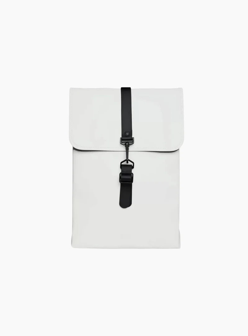 La silueta de la Rucksack personifica la estética de los bolsos de Rains, caracterizada por una prominente solapa y una correa central con cierre de mosquetón. Esta mochila impermeable de líneas limpias y atemporales presenta un bolsillo interior para el portátil, un espacioso compartimento principal y correas traseras de TPU de tacto suave.