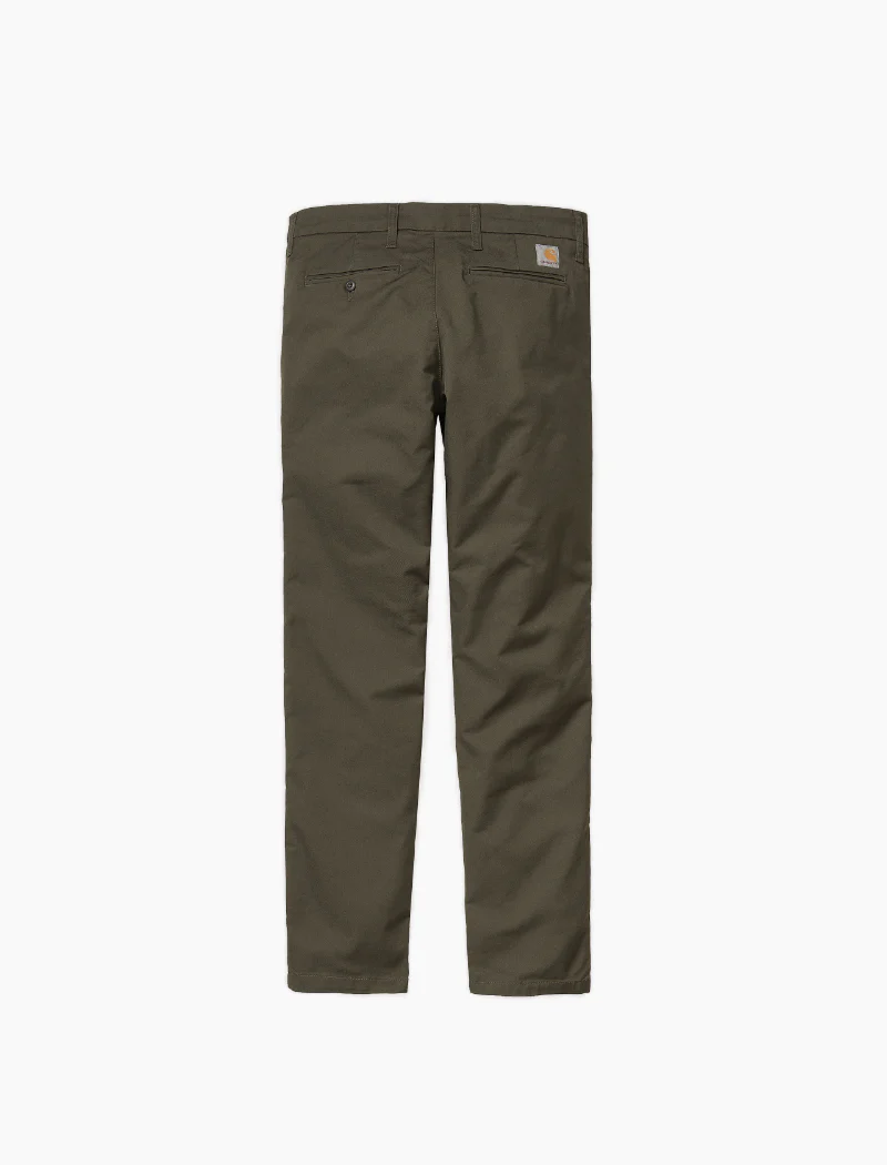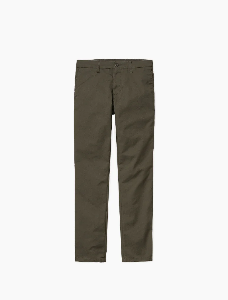 El Sid Pant es un pantalón chino de sarga de algodón y mezcla, con corte slim. Confeccionado con nuestra sarga elástica “Lamar”, una mezcla de algodón y poliéster diseñada para aportar comodidad y facilidad de movimiento. Incluye dos bolsillos laterales, costuras reforzadas en zonas de tensión, dos bolsillos reversibles y la etiqueta con el logotipo de la “C” de Carhartt.