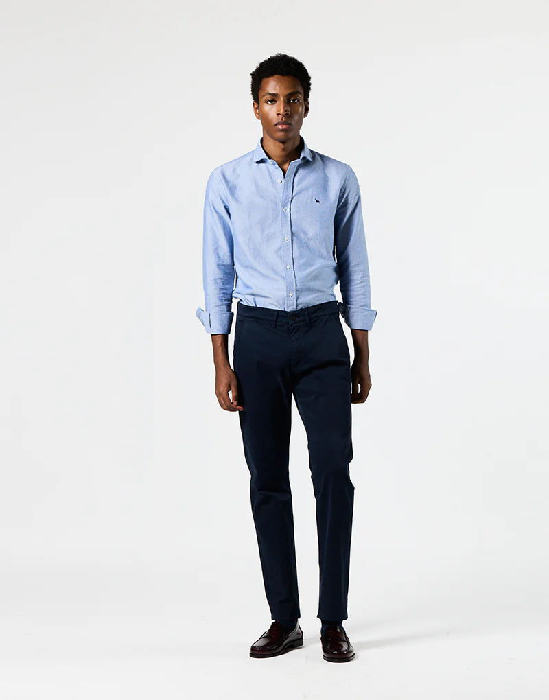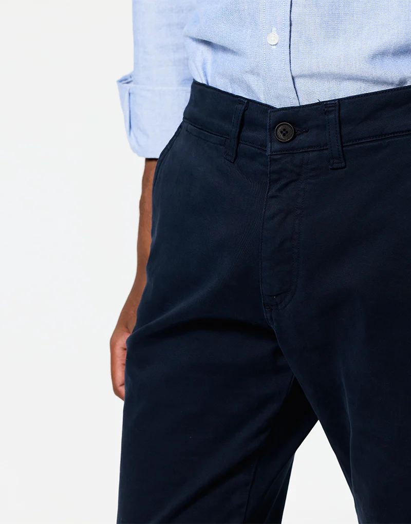 Pantalón chino en azul marino, un clásico atemporal y uno de los colores más vendidos por su practicidad. Es perfecto si buscas un pantalón que puedas usar una y otra vez sin que pase de moda.