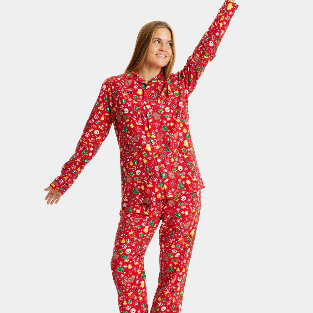 Pijama Navideña para Adultos Unisex Rojo con Motivos Navideños Algodón Orgánico