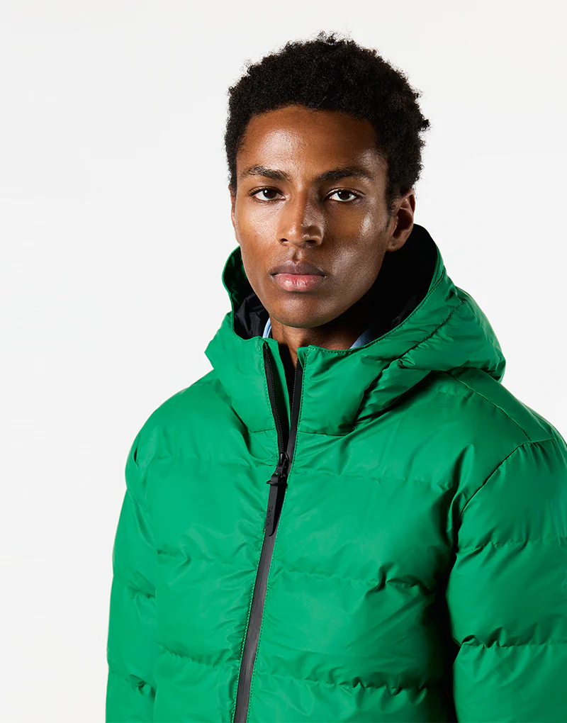 Abrigo impermeable acolchado confeccionado pensando en la comodidad y la calidez, el acolchado Hrom está forrado con una capa aislante transpirable sin plumas y diseñado con cámaras sin costuras. Presenta un cierre con cremallera de doble tirador y bolsillos con cremallera impermeable en contraste. Una interpretación fresca y joven de la ropa deportiva metropolitana.