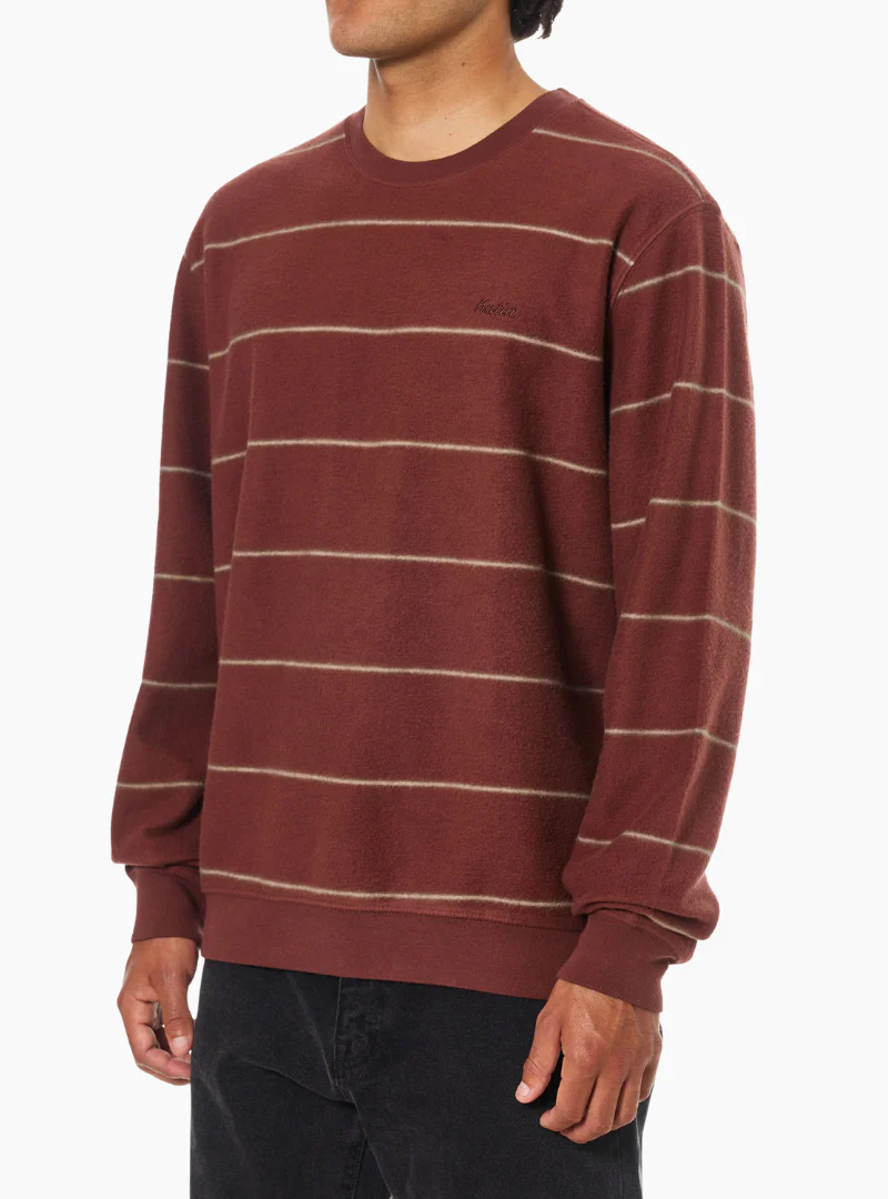 La sudadera Parks Crew de Katin USA en color Mahogany está confeccionada en felpa de algodón 100% con un tejido de rayas teñidas en hilo. El tejido se ha invertido y cepillado para conseguir un acabado interior ultrasuave y cálido. Incluye el bordado de Katin en el pecho y un diseño cómodo, ideal para el día a día o para un look relajado con estilo.