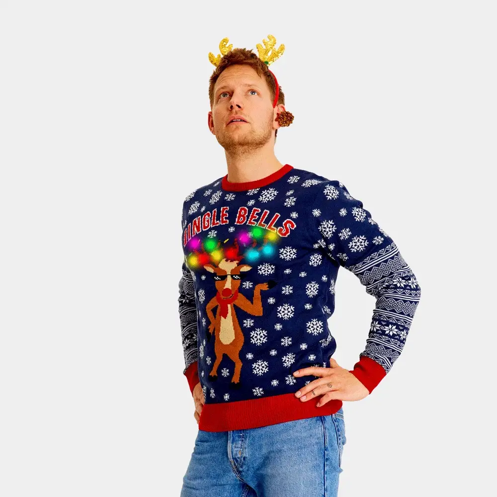 Suéter de Navidad con Luces LED para Hombre Jingle Bells