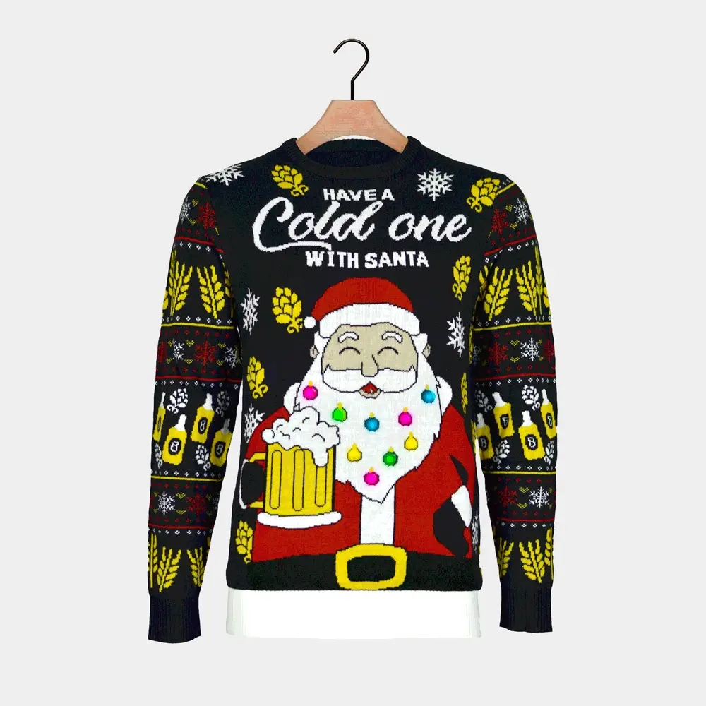 Suéter de Navidad con Luces LED para Mujer Santa con Cerveza