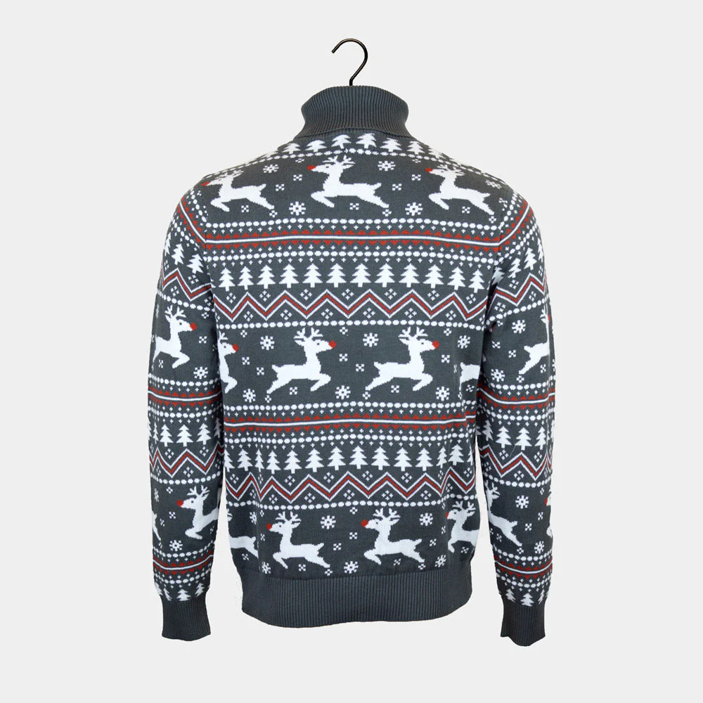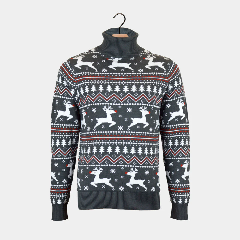 Suéter de Navidad de cuello alto Parejas Gris con Renos Algodón Orgánico
