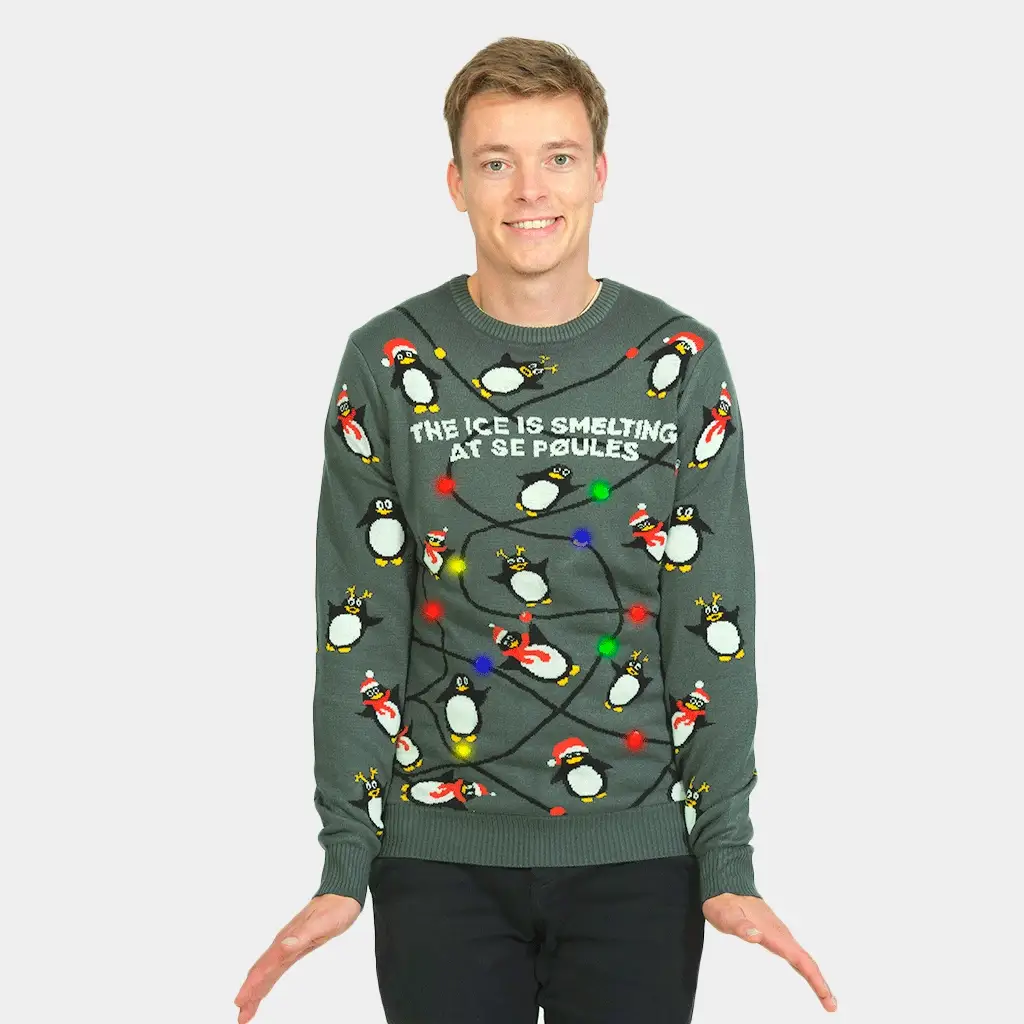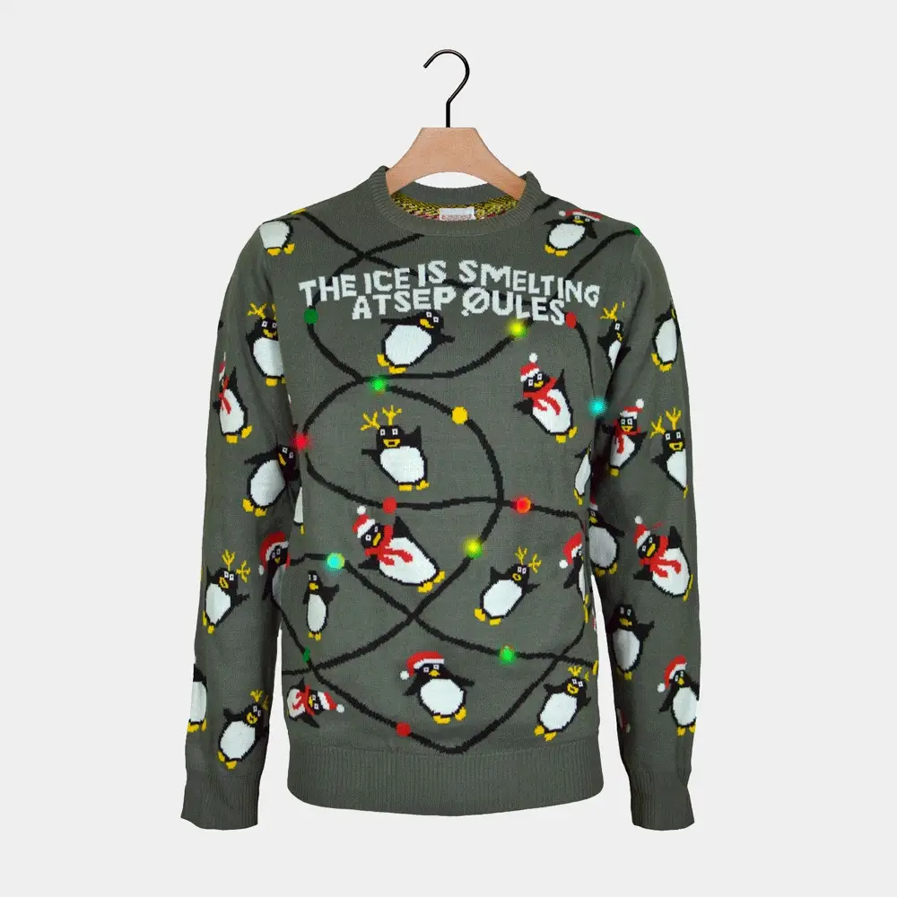 Suéter de Navidad de Luces LED para Familia Gris con Pingüinos
