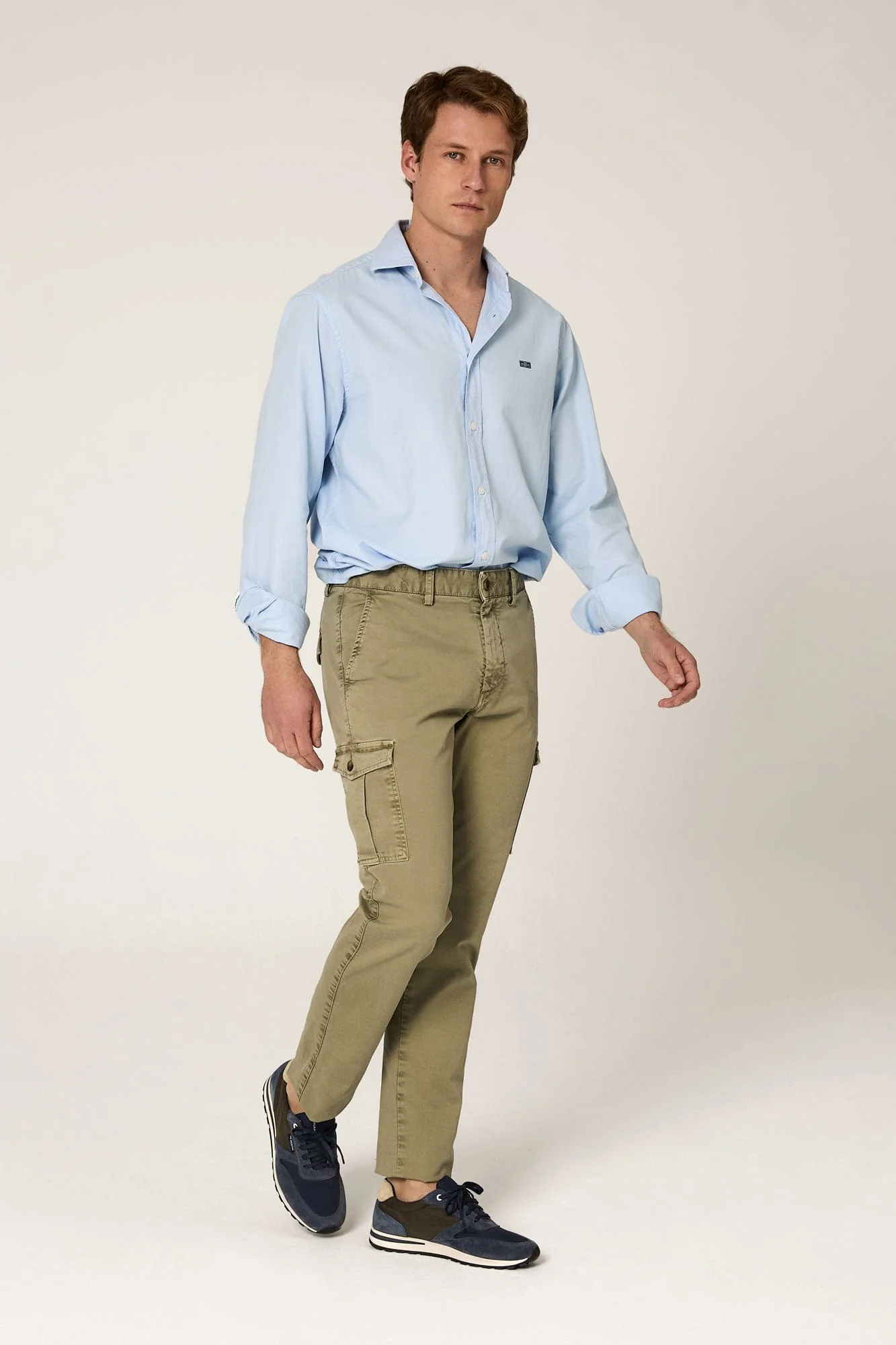 Los pantalones Chino cargo con bolsillos traseros con solapa y bolsillos a media pierna con fuelle. Para que le des un toque aventurero y desenfadado a tu imagen sin renunciar a la línea estilizada del Chino clásico.