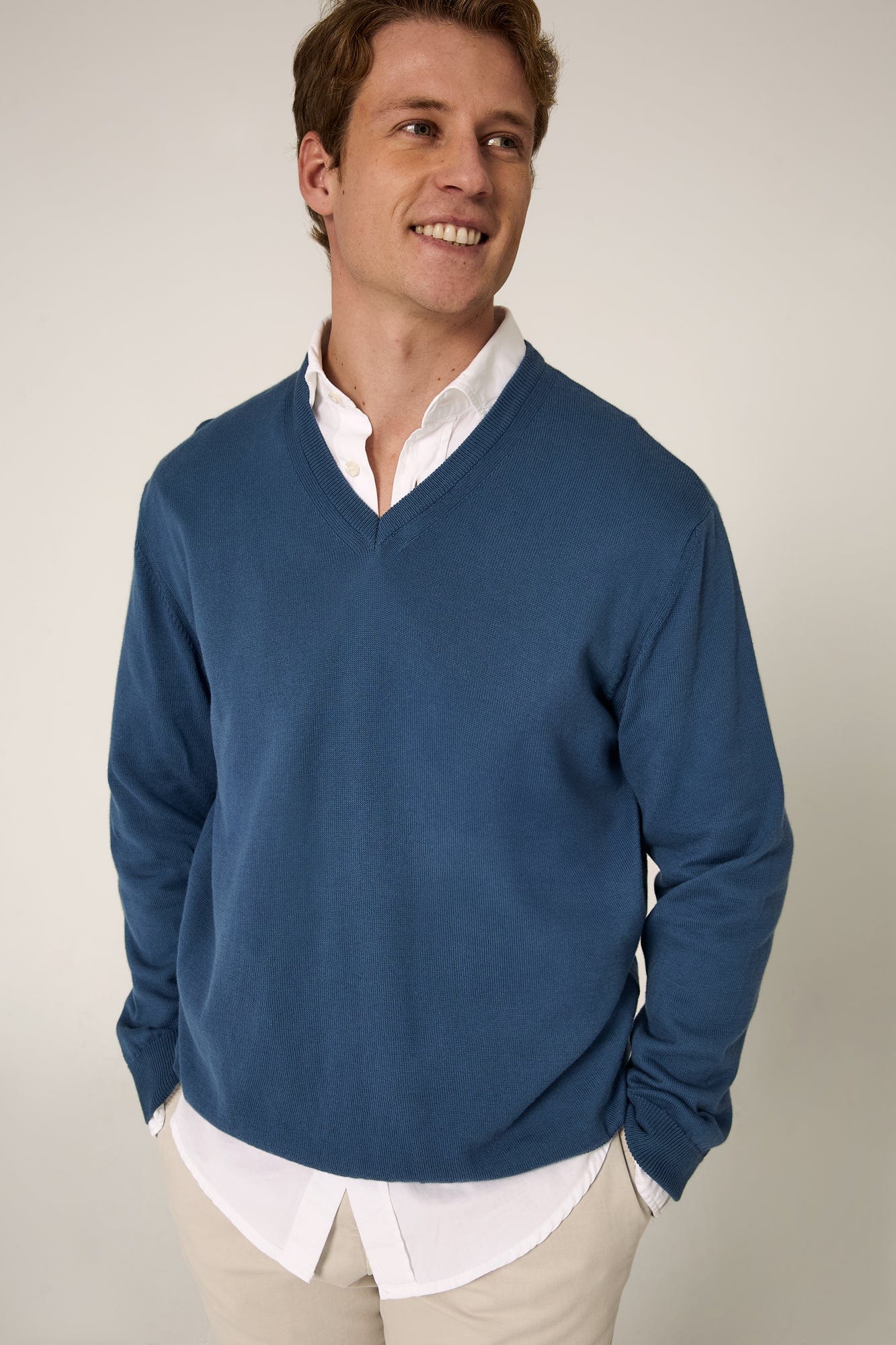 Siente la suavidad y calidad de nuestro Jersey confeccionado 100% de Algodón. El cuello de pico y su corte moderno ceñido al cuerpo te harán lucir elegante y estilizado.