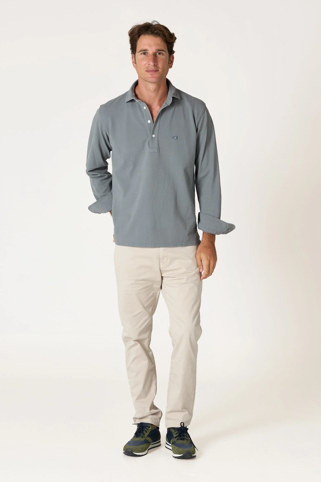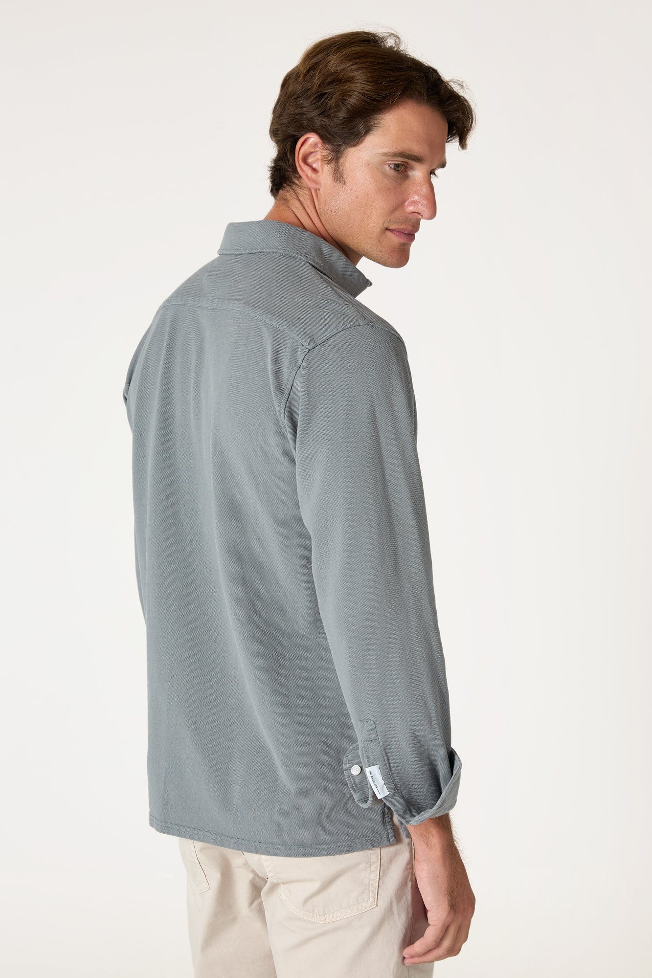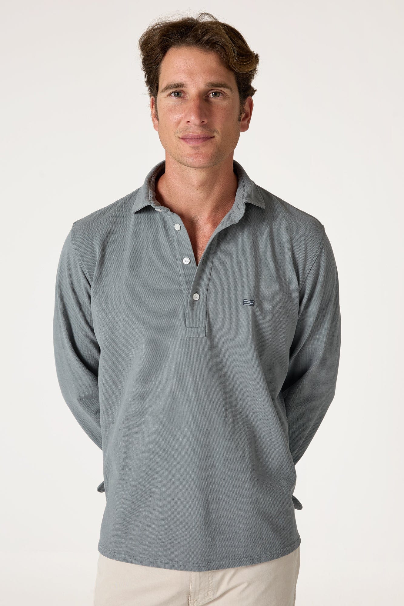 Con cuatro botones frontales y mangas camiseras, este clásico de The Brubaker ofrece comodidad y estilo con un toque distintivo.